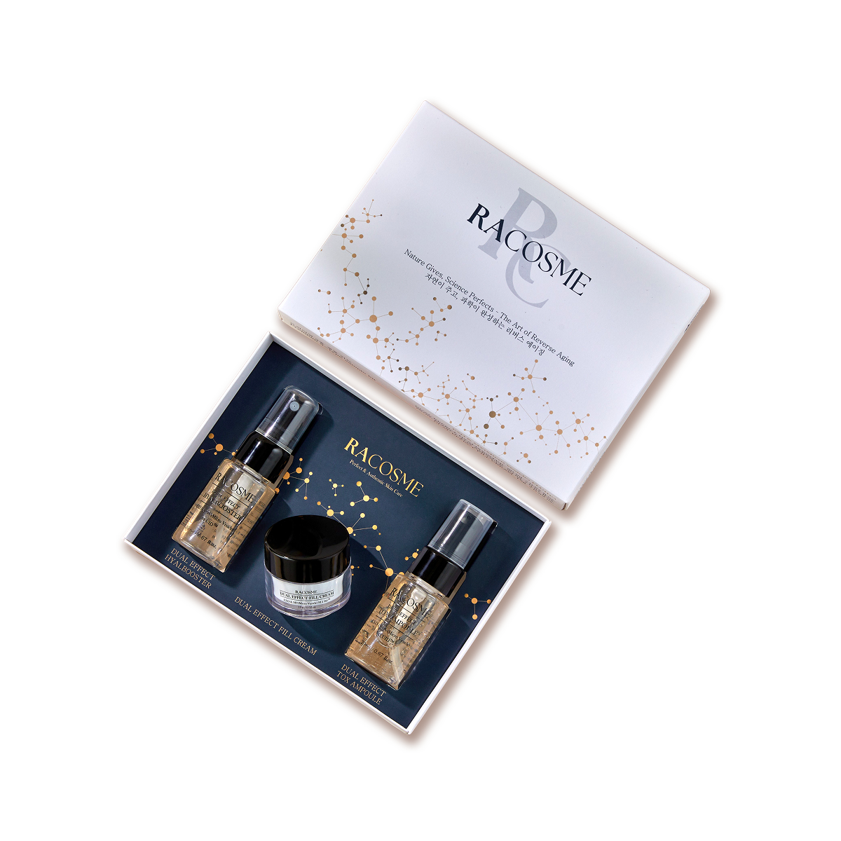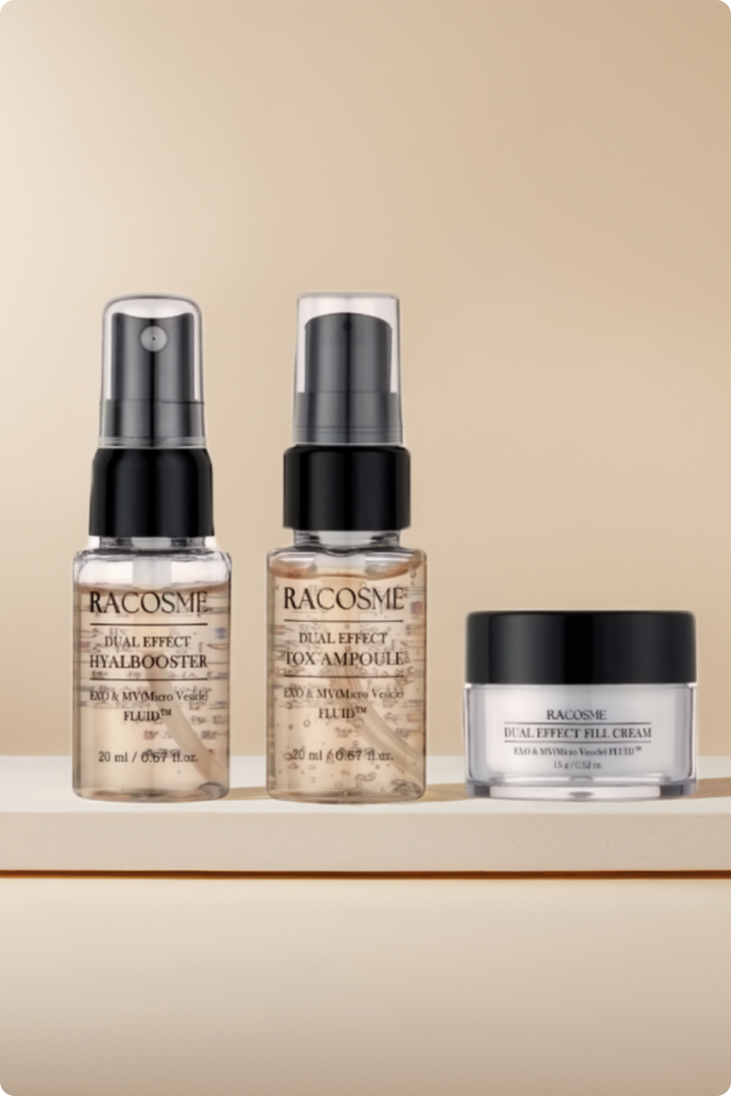 Hyal Booster — Where moisture begins Tox Ampoule — Reconstructing firmness from within Renew Fill Cream — Precision in skin density Acidic Cleanser — The purity your skin remembers